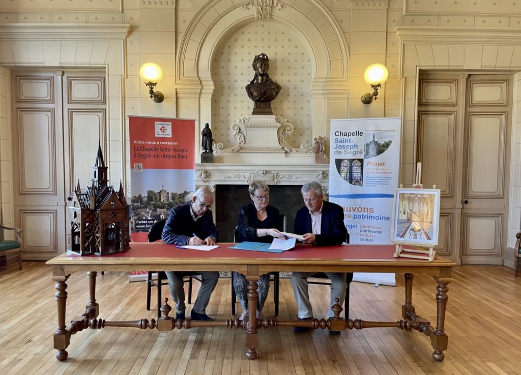 C’est désormais officiel, les Amis de la Chapelle Saint-Joseph ont signé une convention de collecte de dons avec la Fondation du Patrimoine et la municipalité de Segré-en-Anjou-Bleu, propriétaire de l’édifice. A cette occasion, la Fondation a fait savoir qu’elle octroyait d’ores et déjà au projet une somme de 20 000 €, issue d’un legs.